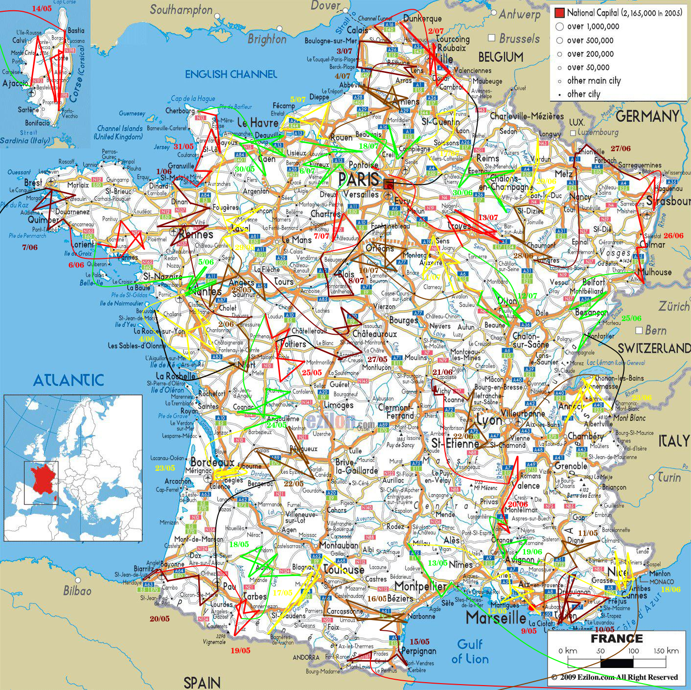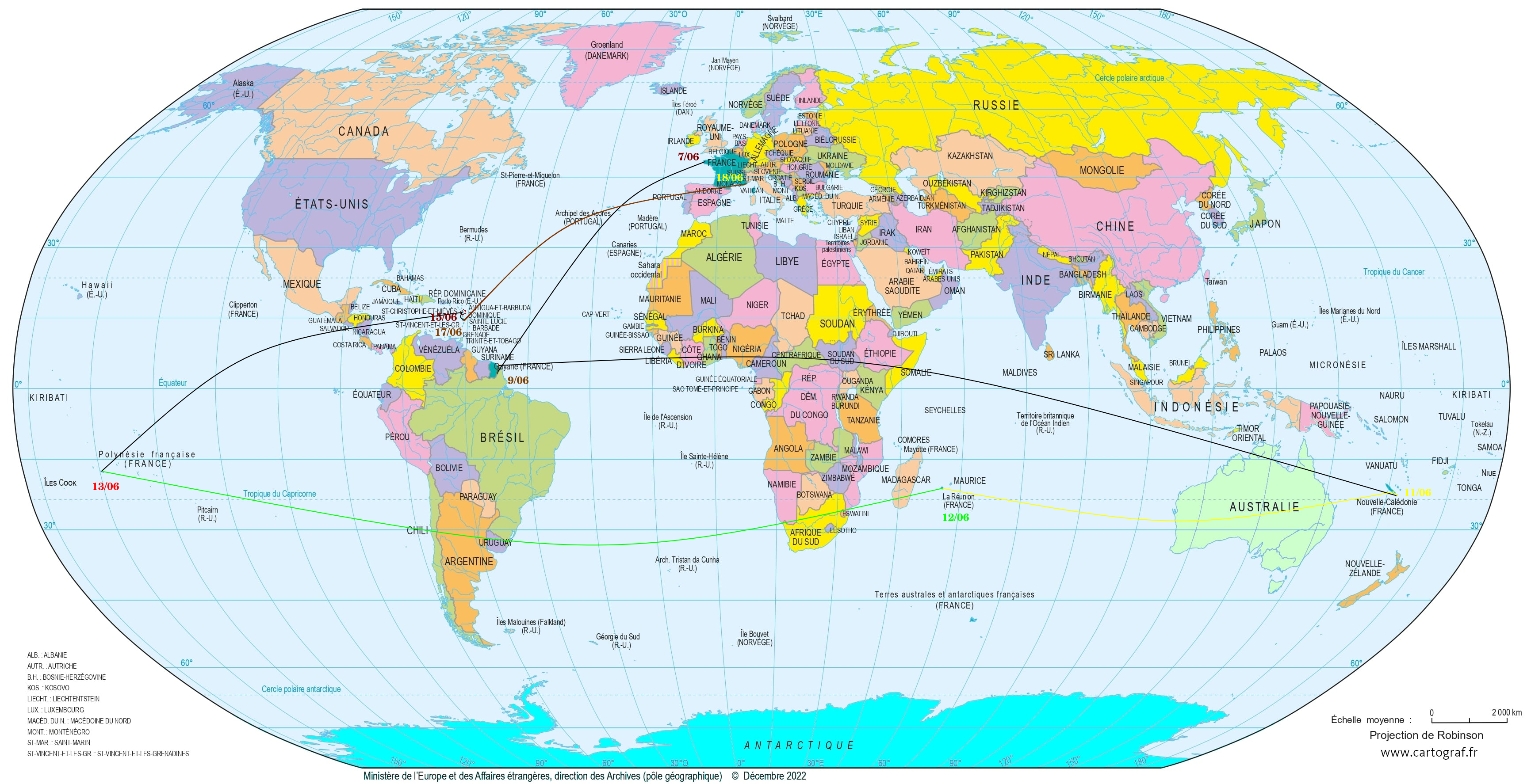 Mais ce n'est pas grave, j'ai décidé de retracer moi-même la carte de chaque étape à l'aide des maigres informations qui étaient fournies, et je dois avouer qu'elle aura intérêt à être sacrément rapide. Si certaines étapes semblent suivre un parcours logique, d'autres risquent d'être assez folichonnes, mention spéciale pour sa journée en Corse où la flamme devra plusieurs fois traverser l'île du Nord au Sud.Bref, à partir de cette liste, voici les cartes que j'ai tracées :